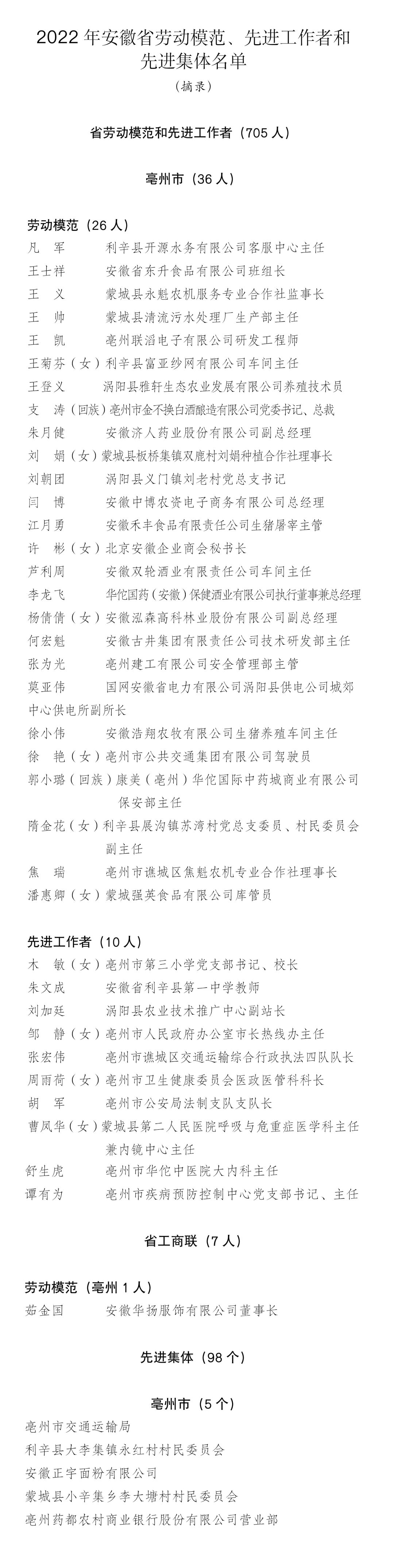 安徽省勞動(dòng)模范、先進(jìn)工作者和